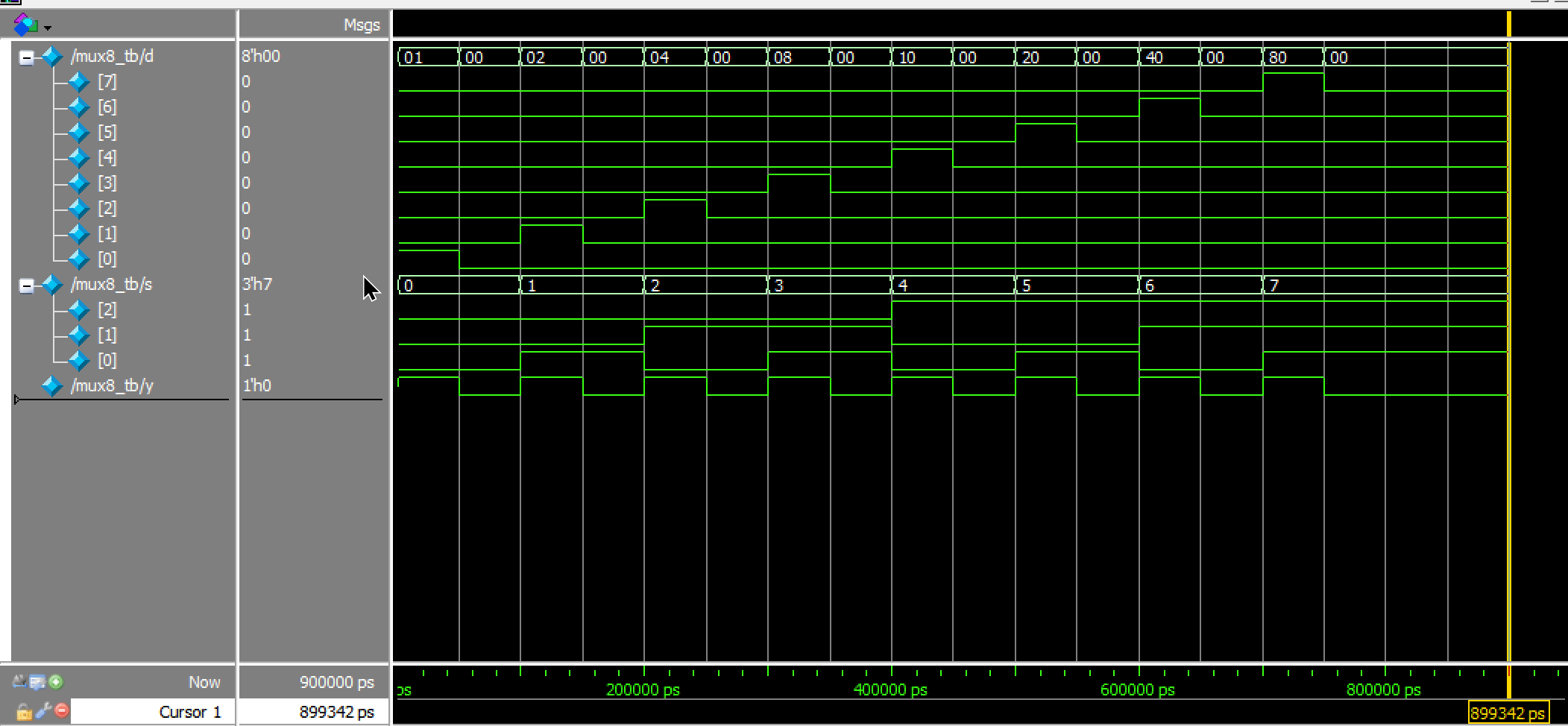assign y = !s2&!s1&!s0&d0 | !s2&!s1&s0&d1 | !s2&s1&!s0&d2 | !s2&s1&s0&d3 | s2&!s1&!s0&d4 | s2&!s1&s0&d5 | s2&s1&!s0&d6 | s2&s1&s0&d7;